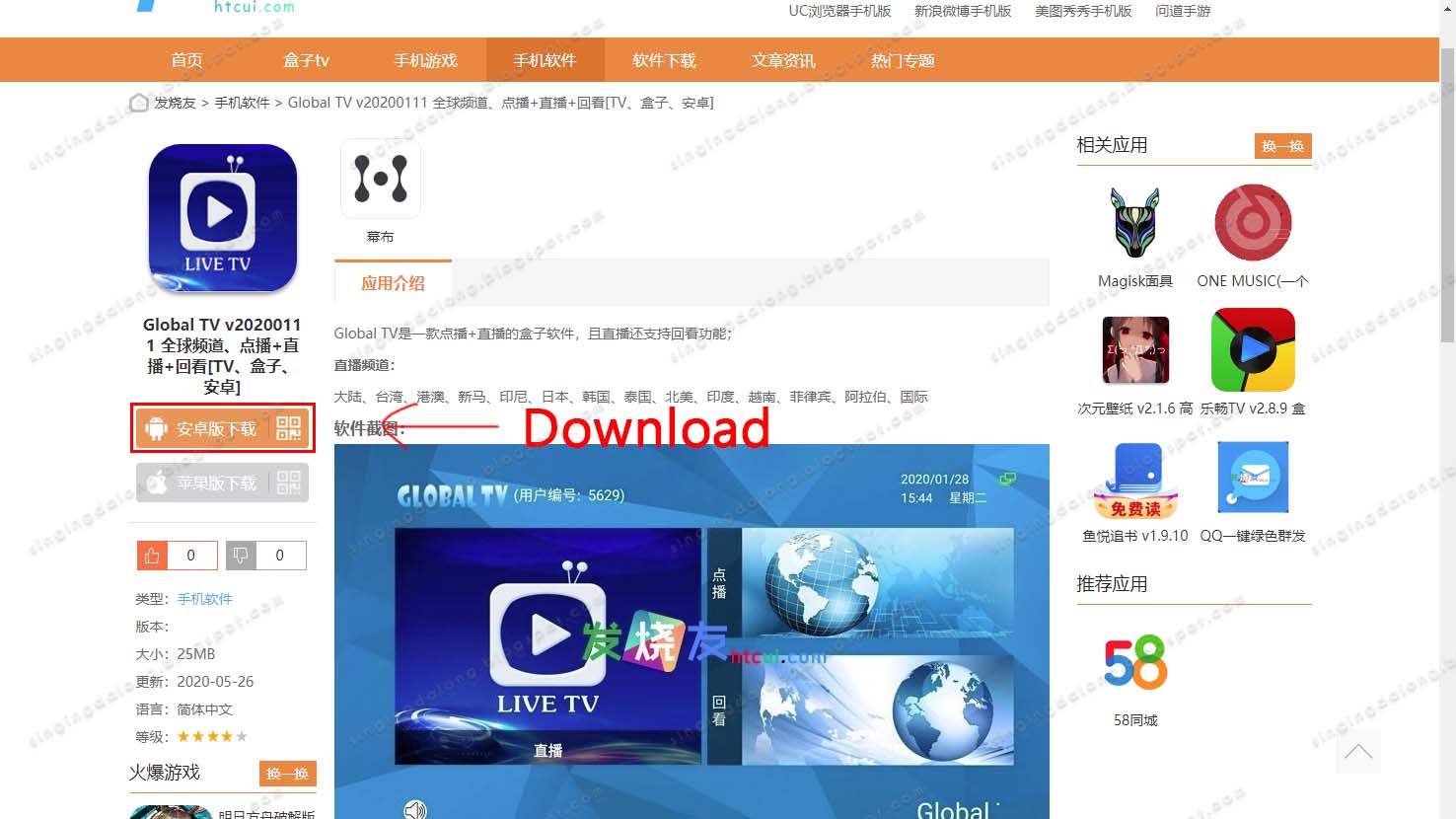 Global TV 앱은 출처(lanzous 링크)에서 받을 수 있다
