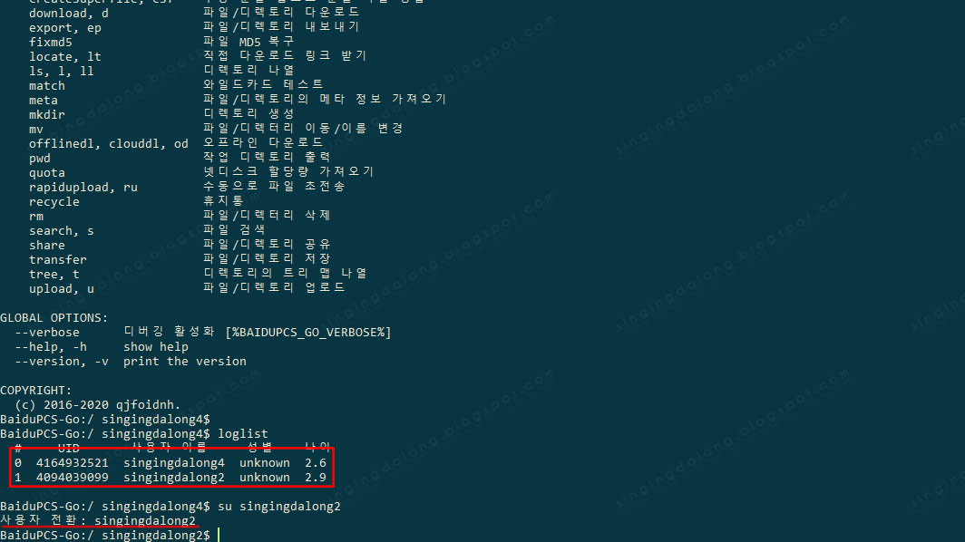 BaiduPCS-Go 한국어판 다운로드 및 간단한 설명은 「바이두 넷디스크 명령 프롬프트 기반 관리 프로그램 | BaiduPCS-Go(한국어)」 글 참고.