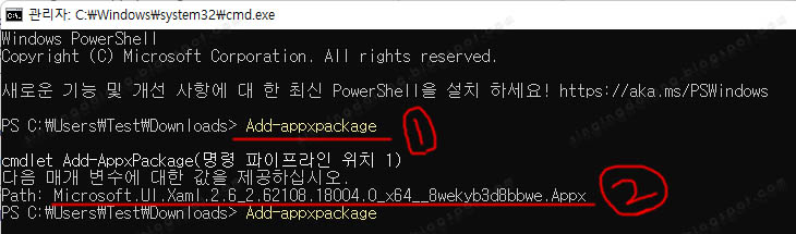 해당 패키지가 있는 폴더에서 파워셸을 관리자 권한으로 연 다음,